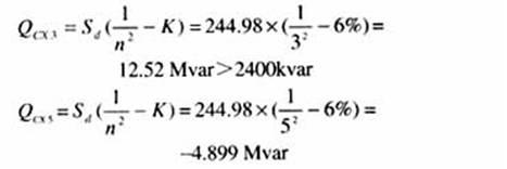 一般情況下,110kV變電所裝設的電容器的容量較?。?.05Sd~0.06Sd),不會發(fā)生3次諧波并聯(lián)諧振或接近于諧振,但會引起3次諧波的放大;而220kV變電所裝設的電容器的容量較大,有可能發(fā)生3次諧波并聯(lián)諧振或接近于諧振,因此務必引起設計人員的高度重視。