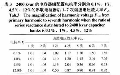 (4)對于采用0.1%~1%的串聯(lián)電抗器,要防止對5次、7次諧波的嚴重放大或諧振;對于采用4.5%~6%的串聯(lián)電抗器,要防止對3次諧波的嚴重放大或諧振。